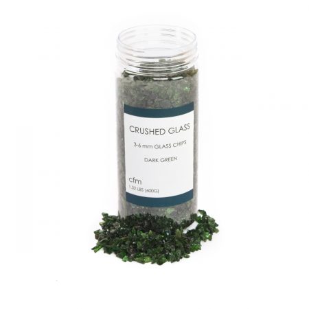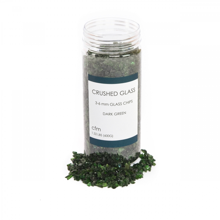 CRUSHED GLASS CHIPS 600G DARK GREEN 3-6MM CRUSHED GLASS CHIPS 600G DARK GREEN 3-6MM