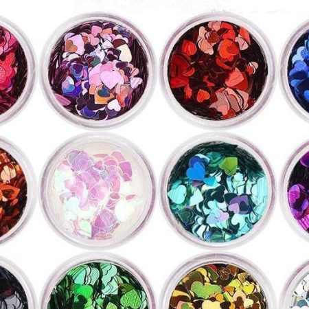 HEART SHAPE GLITTERS 12 COLOURS- Creative Effects Set