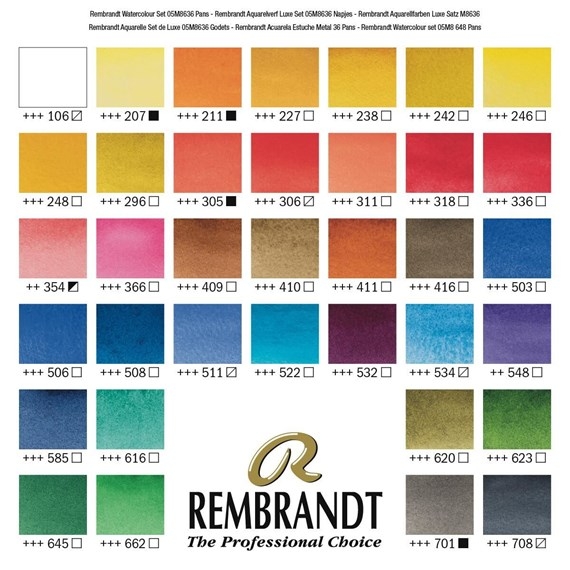 Rembrandt Watercolour metal tin set | 36 half pans + 1 brush