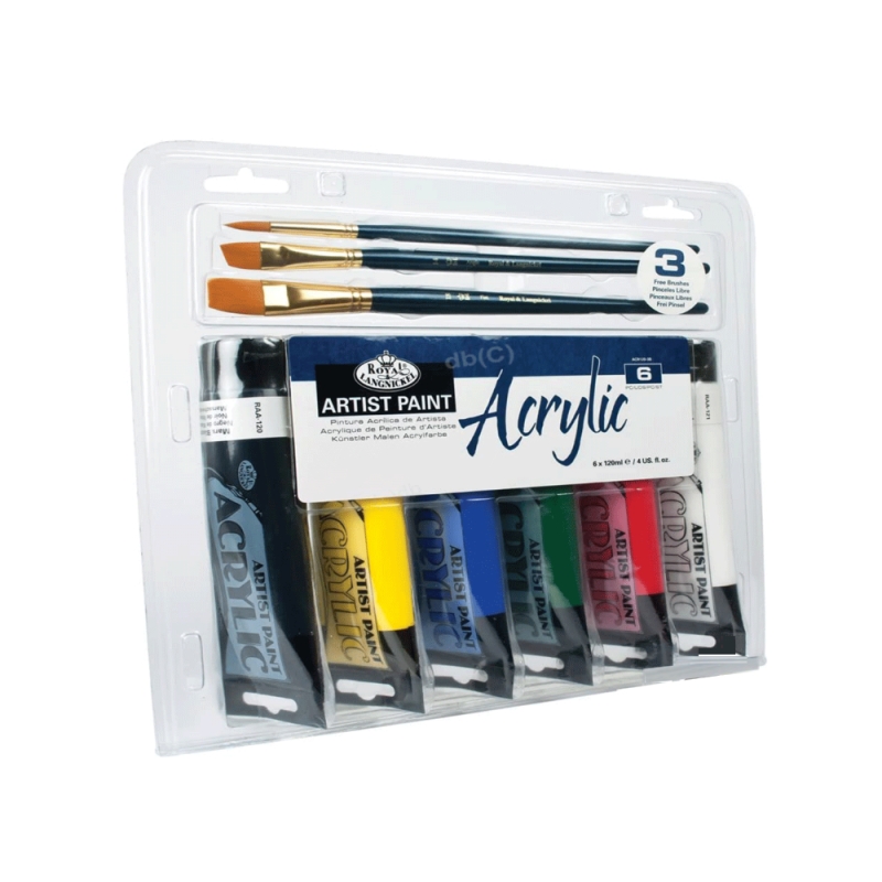 ROYAL & LANGNICKEL® 6 x 120ml Tubes & Three Paint Brushes SET