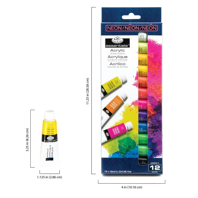 Royal & Langnickel Essentials Acrylic Paints, Neon Colors, 12mlx12pcs/Set Royal & Langnickel Essentials Acrylic Paints, Neon Colors, 12mlx12pcs/Set