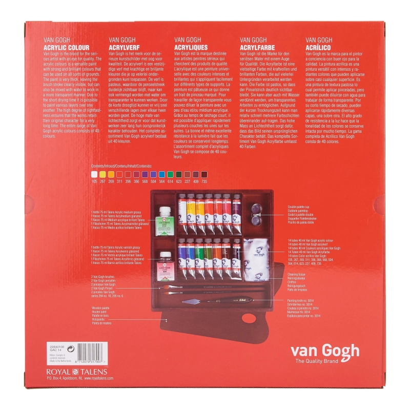 VAN GOGH Acrylic colour wooden box Inspiration | 14 x 40 ml + accessories